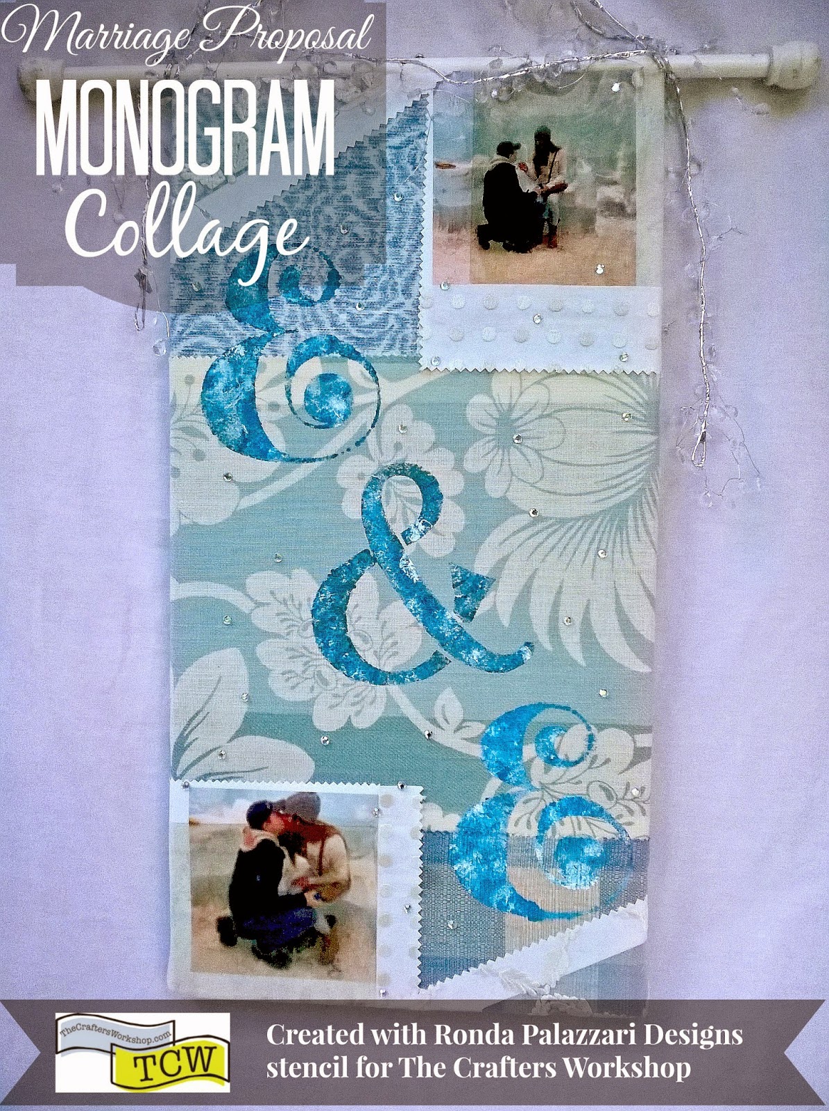 For my third project is a fabric collage commemorating a marriage proposal. The collage is prepared by printing the photos on fabric and painting the couple's monogram with the stencils.