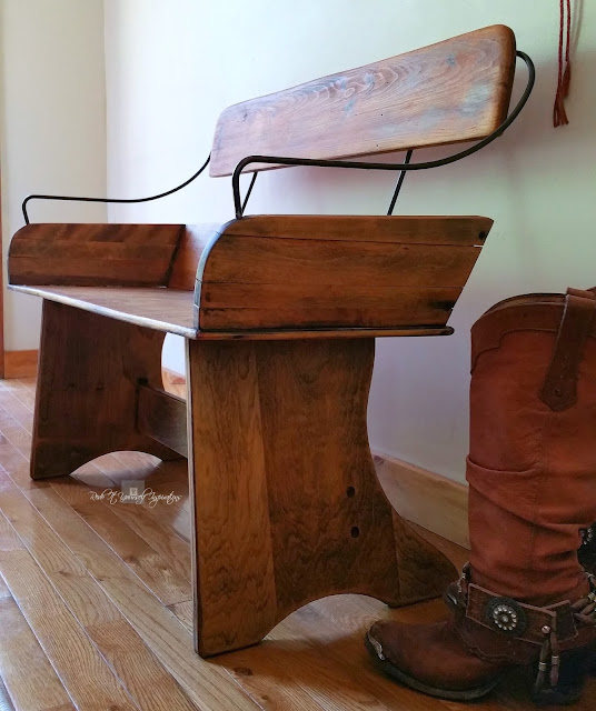 Then one fine day this past winter, I asked the fine husband of mine, "I found a wagon bench at auction, can we go?". He said yes and we did. Landed in Amish country here in the mid part of New York, my bid won this "feast-my-heart-desire".